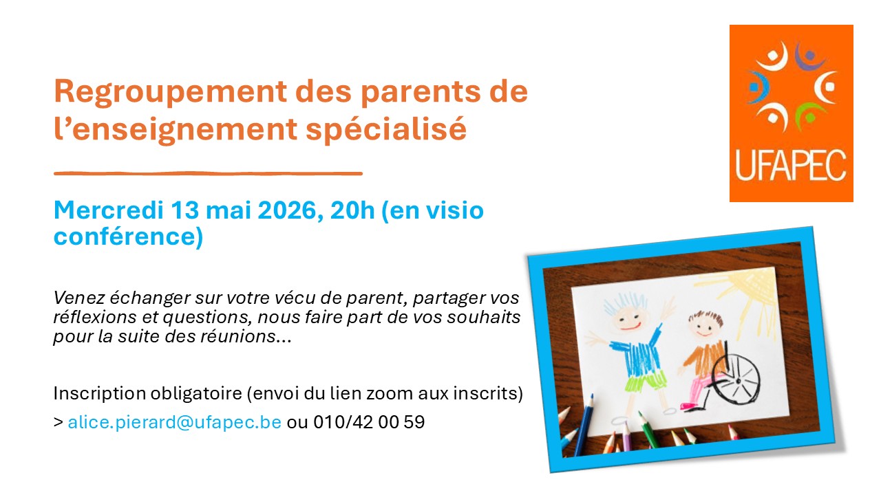 Afin d’échanger entre parents. Vu l'importance de maintenir du lien et de permettre les discussions et le partage de préoccupations entre parents d’élèves de l’enseignement spécialisé. Venez rencontrer d'autres parents et partager vos vécus et expériences.